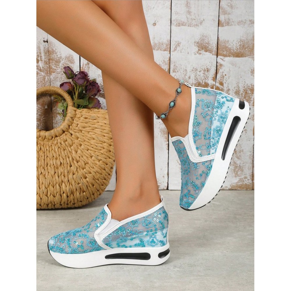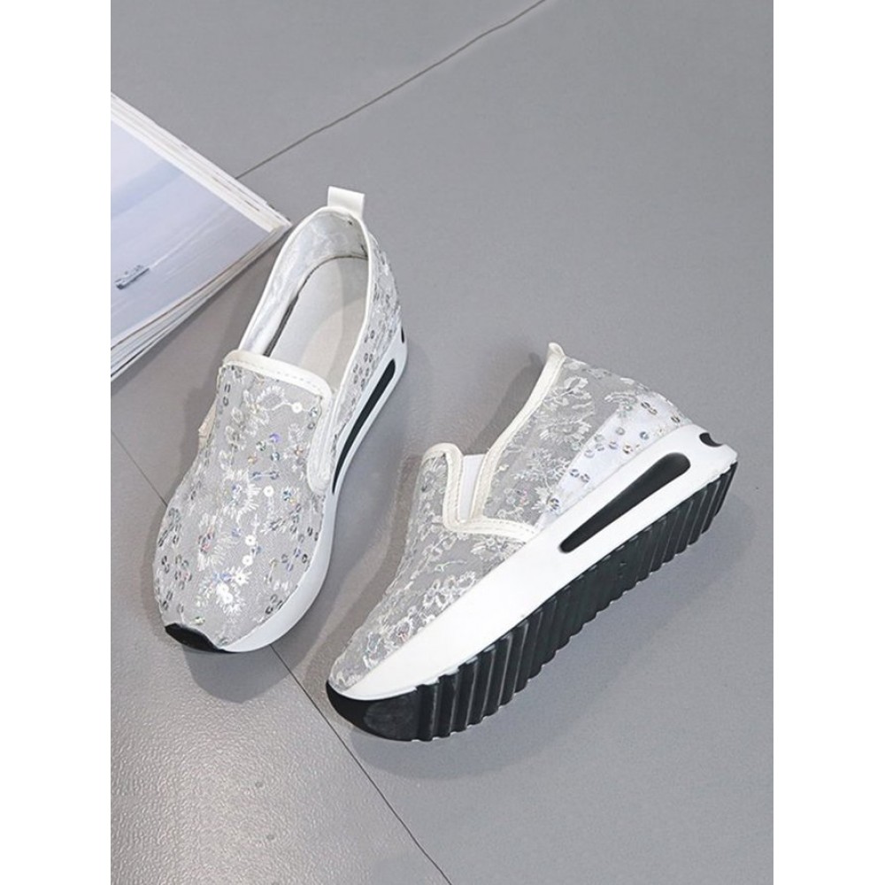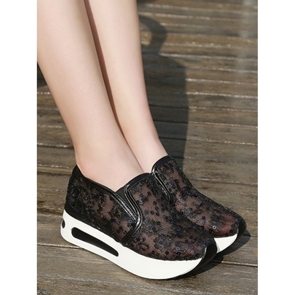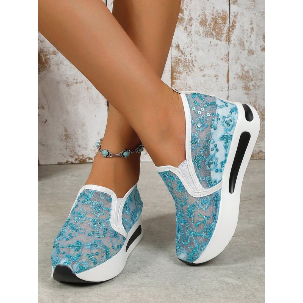 Breathable Floral Embroidery Slip-on Muffin Sneakers