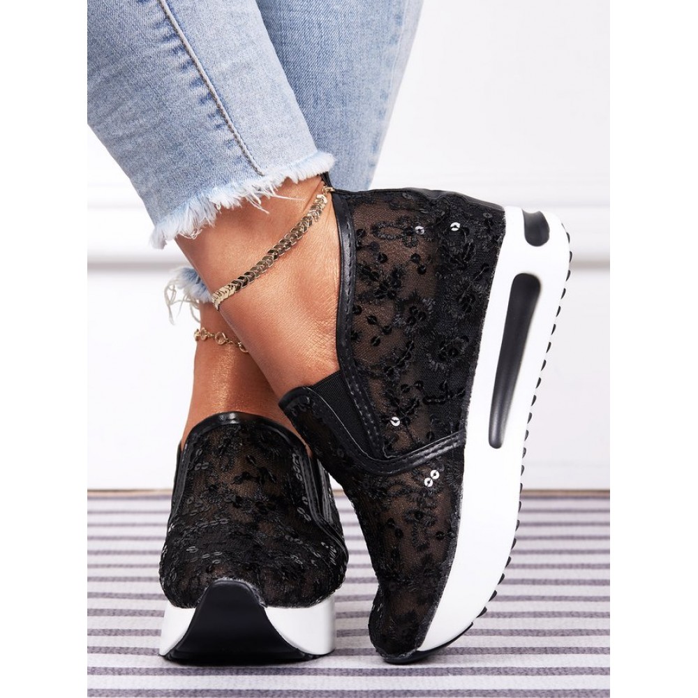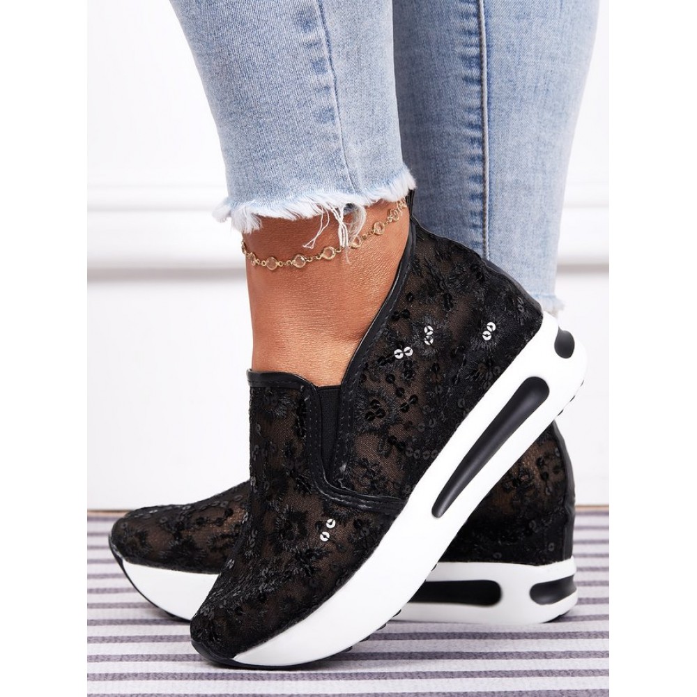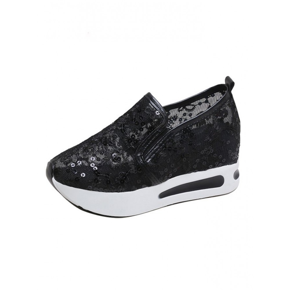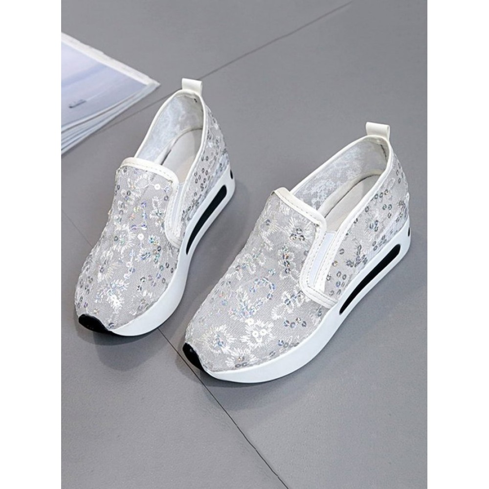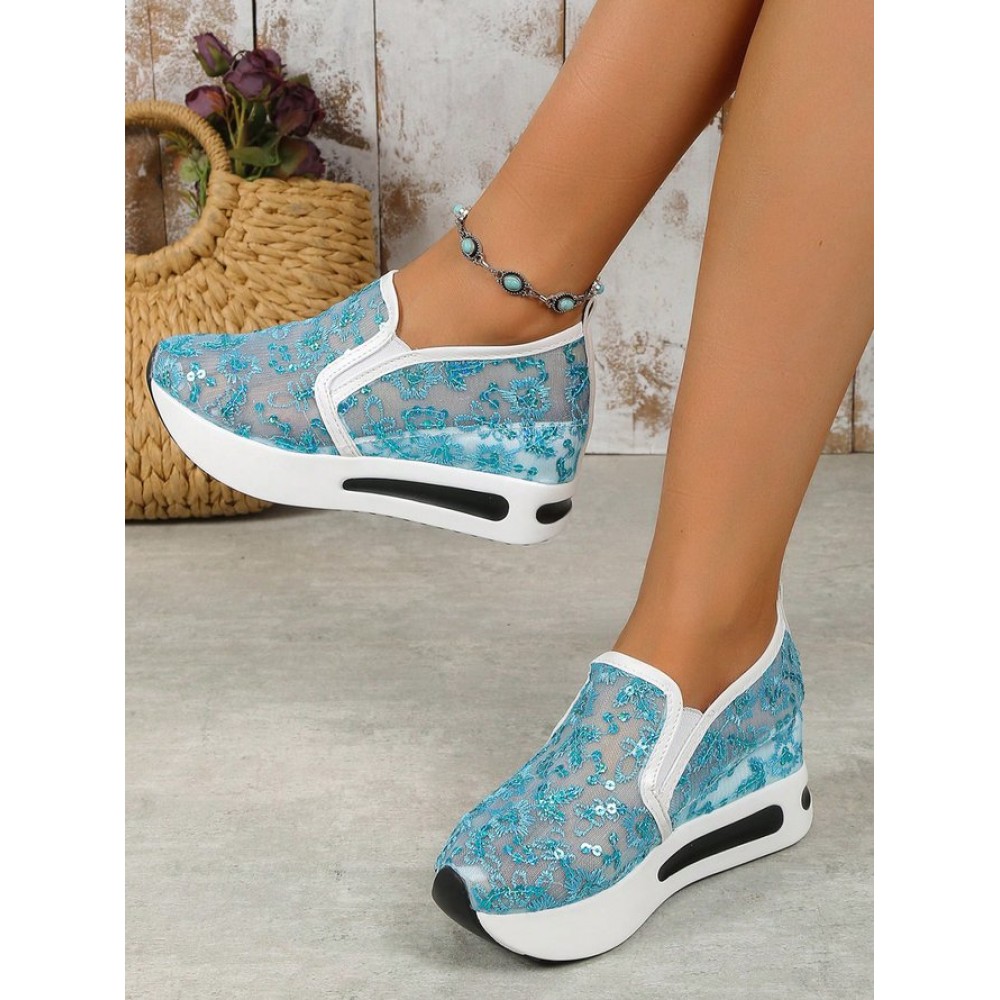 Breathable Floral Embroidery Slip-on Muffin Sneakers