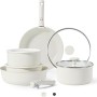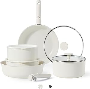 You don’t compromise on quality: balanced conveniency-rich features, fast and uniform heat transfer, and the same non-stickiness as other Carote cookware sets.