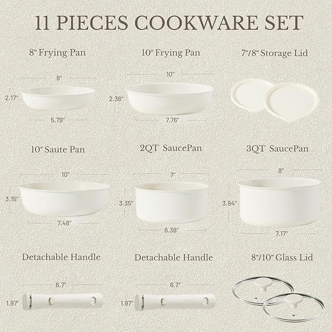 Multitaskig Cookware Set: Detachable handles provide ultimate versatility – from a variety of ranges to ovens, barbeques, refrigerators and one-click access tables. Handle upgrade to ensure safety when connected during cooking.